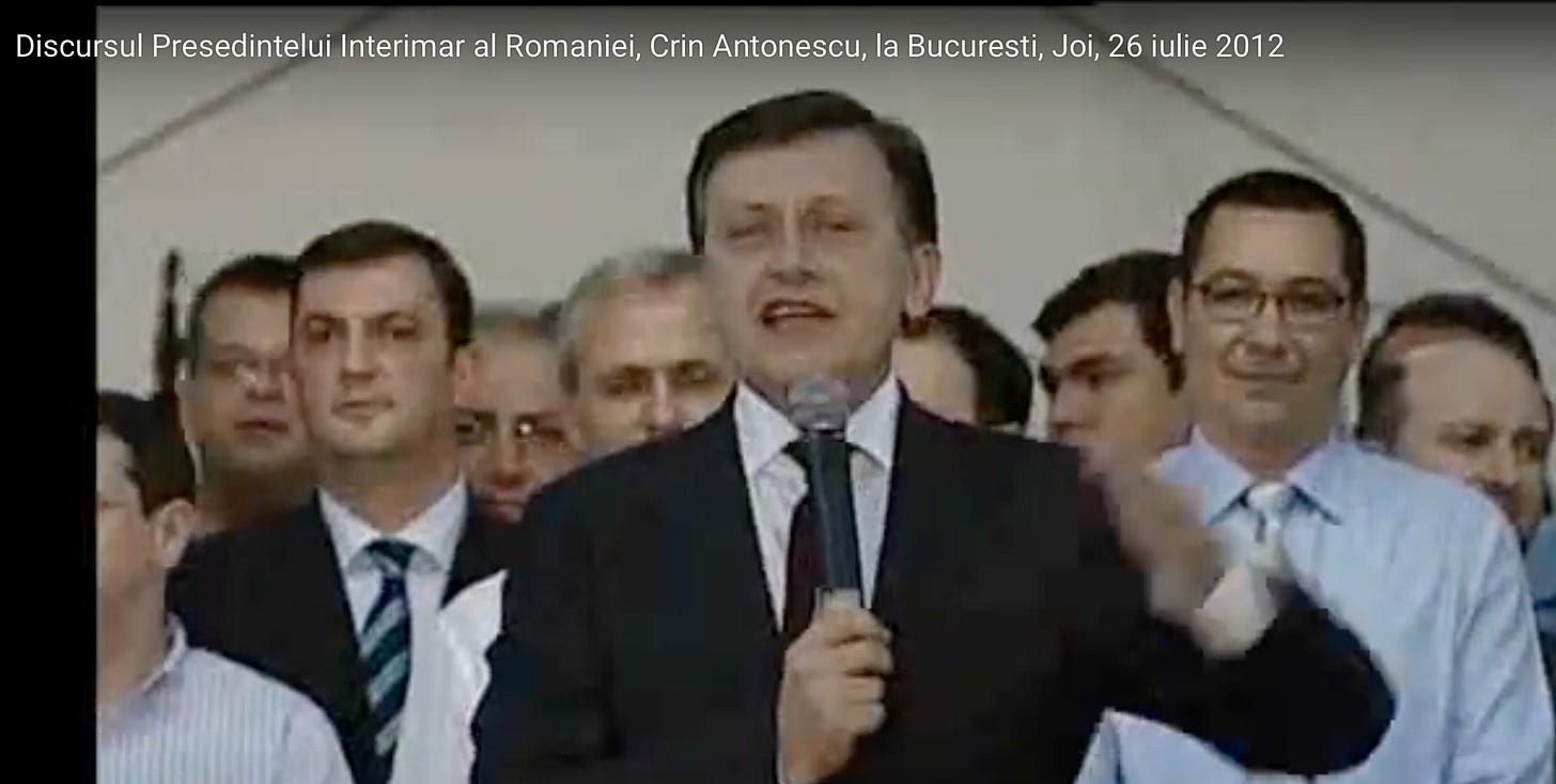 Nu sunt pisǎlog, dar cel mai elocvent exemplu în acest sens îl constituie TOT criza politică și constituțională din anul 2012, când Antonescu a preluat temporar funcția supremă în stat, aceea de președinte interimar al României. În această poziție, el avea ocazia să demonstreze capacitatea de a gestiona echilibrat o situație extrem de tensionată și complicată. Din nefericire, reacția sa a fost opusă așteptărilor: a manifestat indecizie, pasivitate și o clară lipsă de asumare a responsabilităților critice.