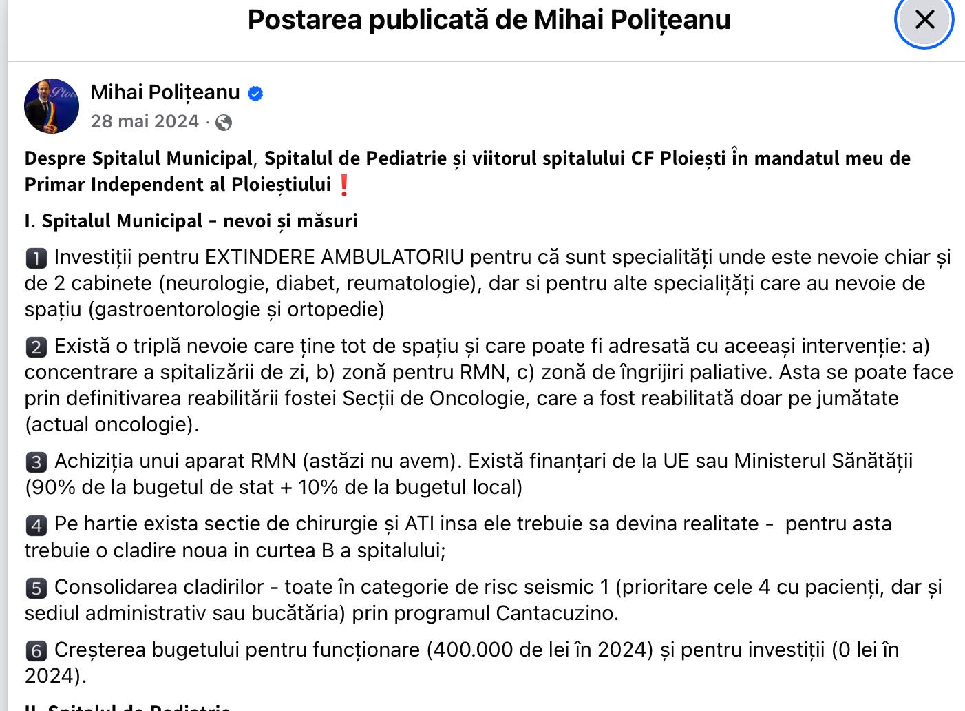Domnul Politeanu, primarul Ploiestiului, o polita de 500 000 de euro pentru spitalul municipal, pacat ca nu am azi niste poze recente cu interiorul.