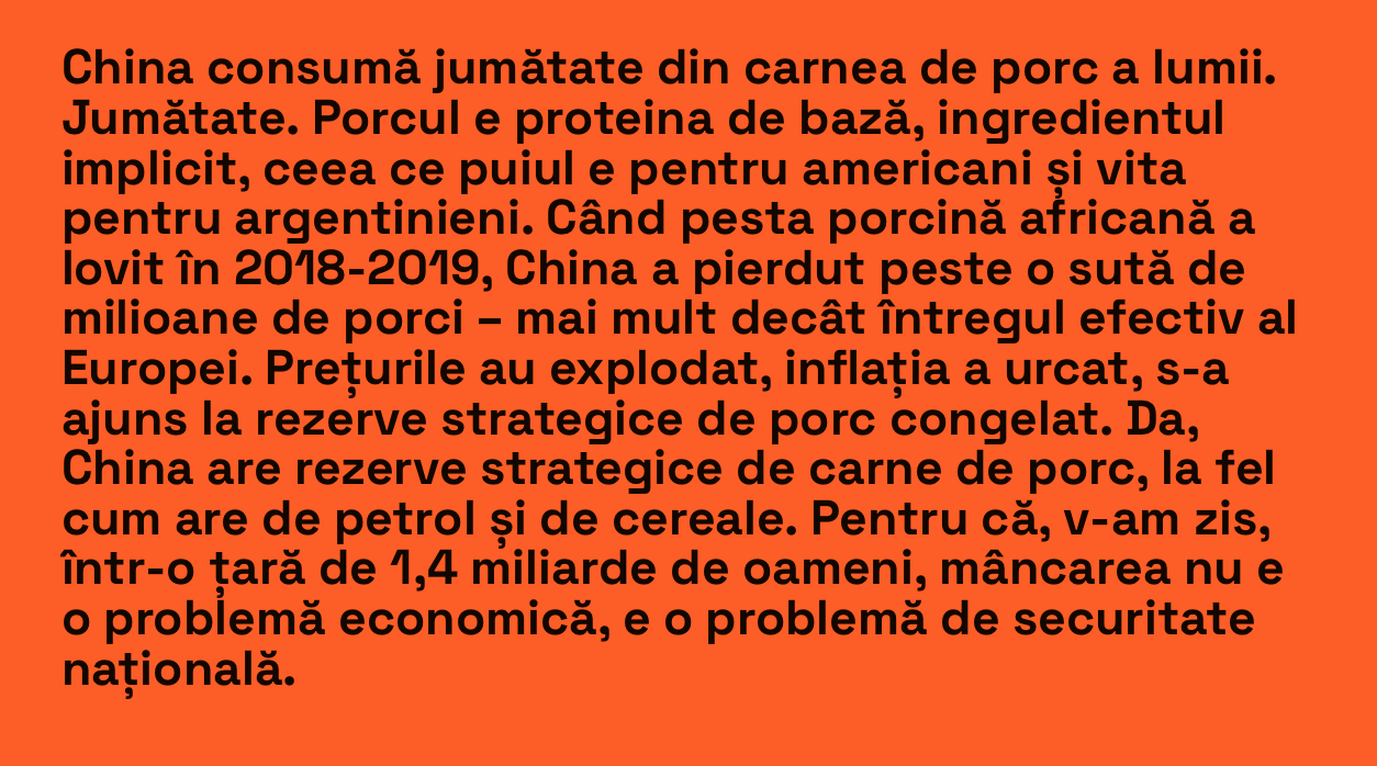 Una dintre perspectivele adeseori ignorate de occidentali în ceea ce îl privește pe Xi este aceea de „manager de stocuri”. Nu, nu îl persiflez pe președintele Xi, din contră, o spun admirativ. Alimentele sau materiile de bază, oricare ar fi ele, sunt în China o problemă de securitate națională.