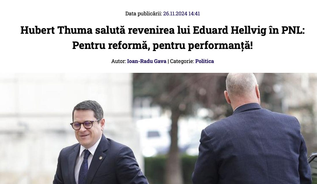 Hubert Thuma, baronul de Ilfov, a jucat foarte bine în marele șlem politic de sambata și i-a băgat în coasta lui Bolojan nu unul, ci doi prim-vicepreședinți. În fapt, Thuma, fiind omul lui Hellvig, se poate spune că Bolojan îl are de acum în coastă chiar pe Hellvig. Dar, e drept, Bolojan e protejat de Kovesi, astfel că ura dintre Kovesi și Hellvig se va desfășura mai ceva ca un serial de pe Netflix, cu cel puțin încă o serie de episoade.