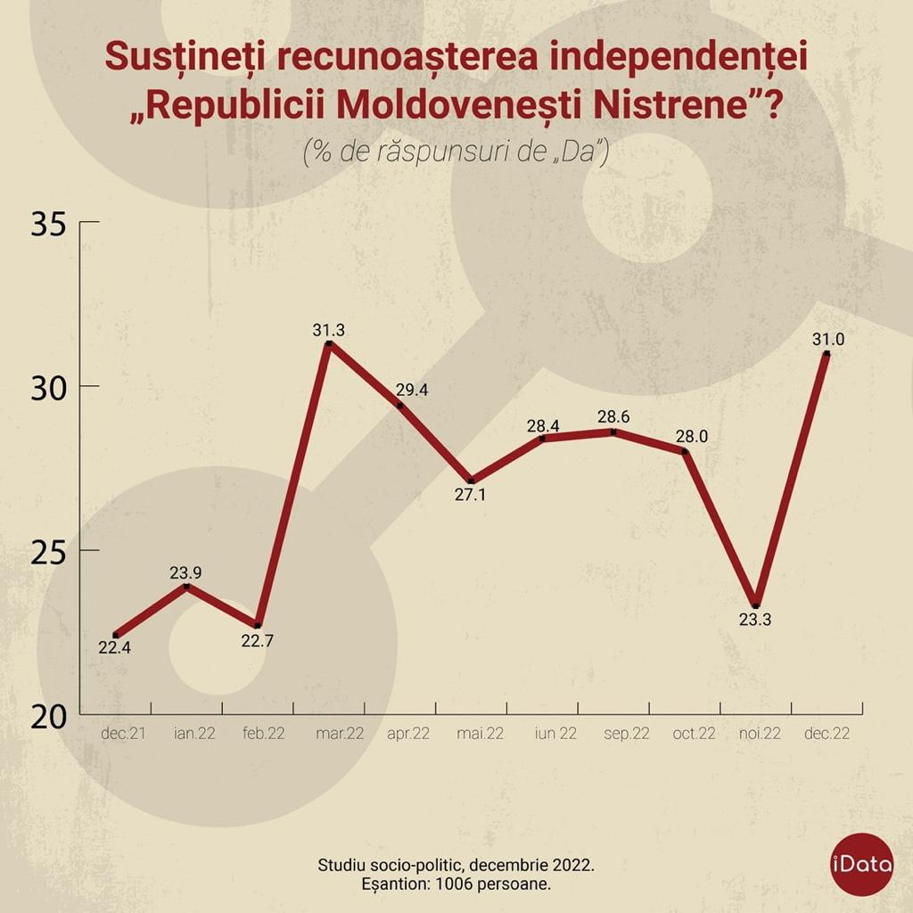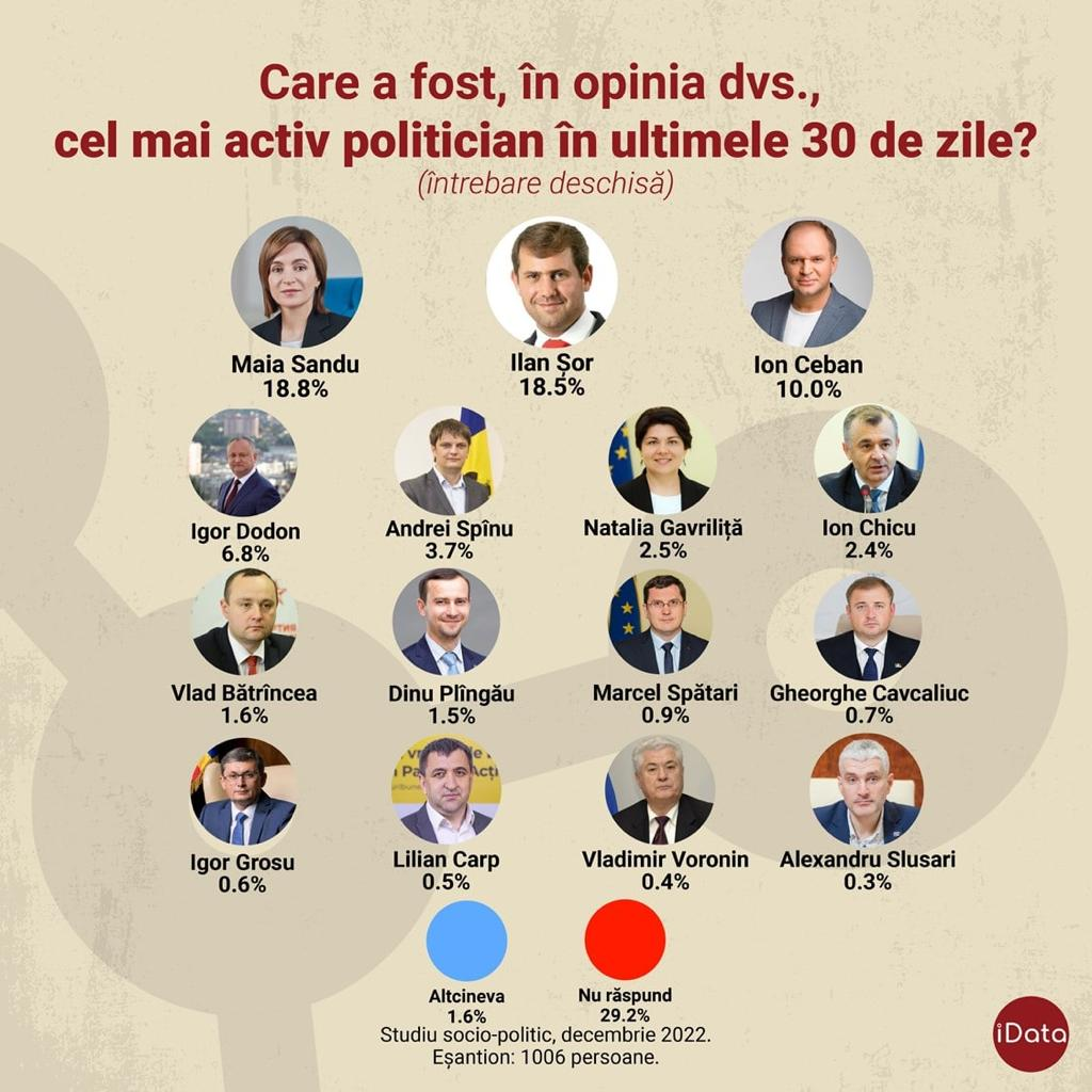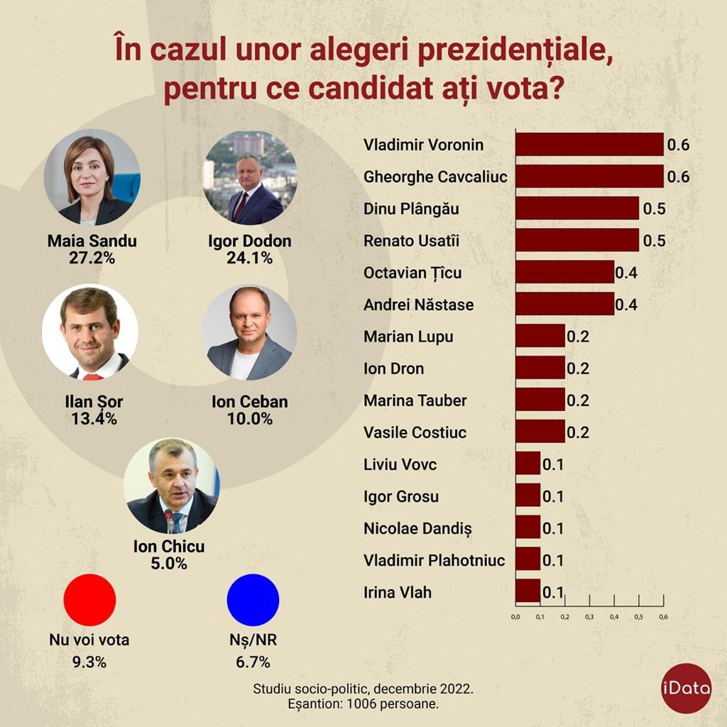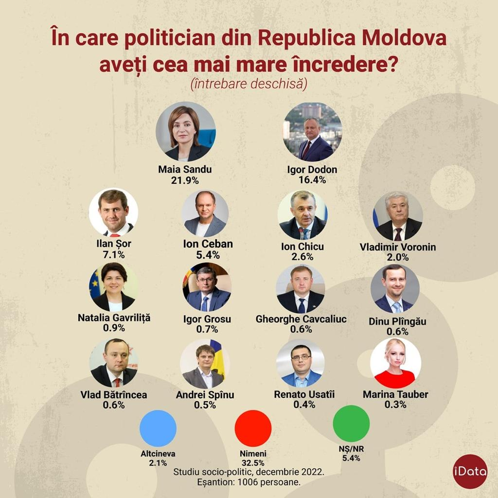 Conform datelor ultimei cercetări de piață, la finele acestui an, situația politică în Republica Moldova este cea pe care o prezentăm mai jos. Fără alte comentarii. Cu excepția precizării că „frații noștri de peste Prut” se îndepărtează tot mai mult și de România, și de Uniunea Europeană.