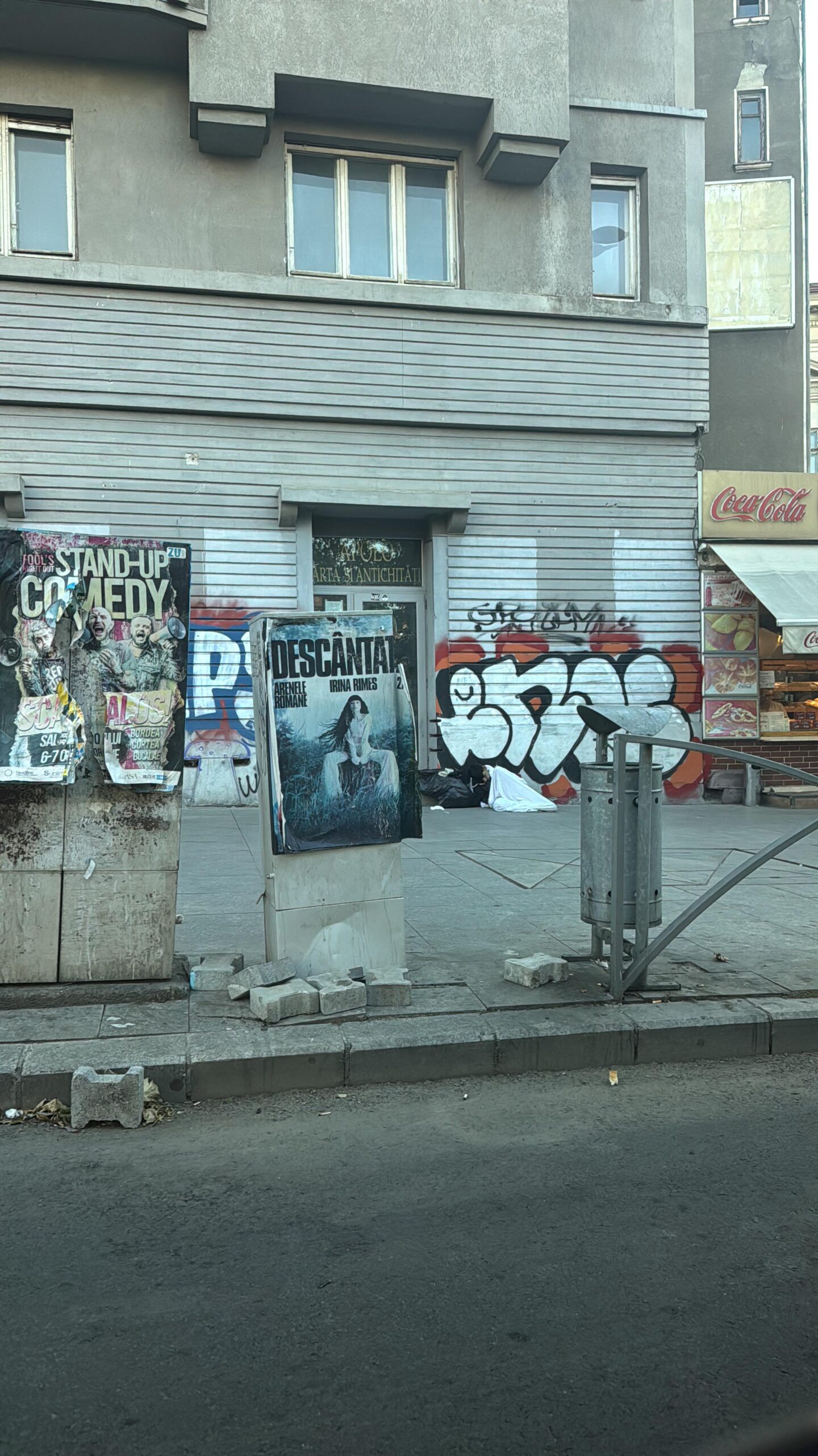 Joi, 28 august, ora 7:20 dimineața, într-un București care ar trebui să fie capitala unei țări europene, imaginea e sfâșietoare: un om doarme pe asfalt, pe o bucată de beton rece, adăpostindu-se cu un cearșaf subțire și niște saci menajeri. În jur, afișe colorate anunță spectacole de comedie, concerte, distracție. România oficială râde, România reală geme.