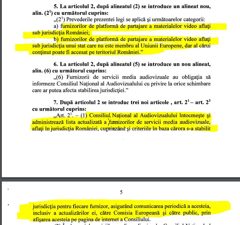 Asta pentru că noi reglementări au fost aduse legii din acest punct de vedere. O extensie a articolului 74 din Codul Audiovizualului specifică faptul că: „În scopul păstrării evidenței oficiale a furnizorilor de platforme de partajare a materialelor video aflați sub jurisdicția României, orice persoană fizică sau juridică, care intenționează să furnizeze astfel de platforme are obligația să transmită Consiliului o notificare cu privire la această intenție”.