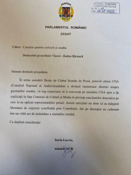 Mai întâi a venit o solicitare pe adresa Comisiei pentru Cultură a Senatului, iar acum se cere și convocarea Comisiei pentru Cultură a Camerei Deputaților, pentru ca membrii CNA să dea cuvenitele explicații privind motivele pentru care au sancționat draconic mai multe case de presă.