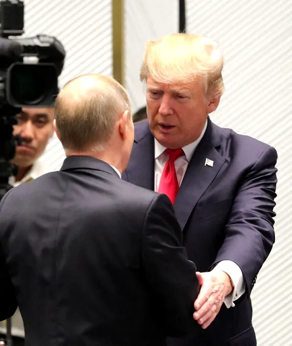 Președintele Donald Trump și președintele rus Vladimir Putin merg împreună la summitul G20 de la Osaka, Japonia, 28 iunie 2019 Sursa: Profimedia