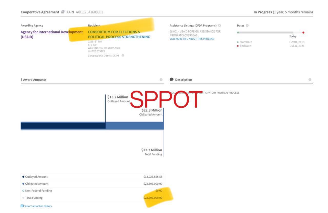 Investigând granturile oferite de USAID, am identificat unul care ne-a atras atenția în mod special. Este vorba despre „Consorțiul pentru Întărirea Procesului Electoral și Politic”, un program finanțat cu 22,3 milioane USD (~400 milioane MDL), lansat la doar câteva luni după apariția PAS și intensificat exact înainte de alegerile prezidențiale din 2024.