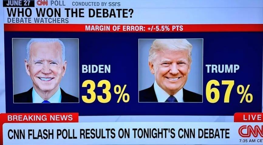 În ce mă privește, am considerat că, dacă aceasta dezbatere totuși va avea loc, ea nu va avea decât scopul precis de a forța eliminarea lui Biden din candidatură, dar printr-o decizie personală a acestuia, spre a nu distruge așa-zisa unitate (inexistentă!) a Partidului Democrat. Iar în ultimele 3 ore, într-adevăr, doar despre asta se discută în platourile televiziunilor și-n mediul online de peste ocean. Trump și echipa lui au dedus acest lucru, iar evoluția acestuia a fost rezervată, fără ruperi de ritm sau afirmații dure, acesta a lăsat impresia că-l conduce pe Biden în mod lin pe drumul către cimitirul politicii americane.