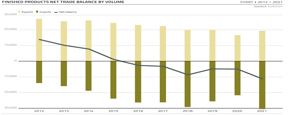 Singura problemuță este aceea că, în toți anii de după 2005, consumul de oțel al UE a crescut, motiv pentru care am ajuns să raportăm cu mândrie deficit comercial net și în creștere la comerțul extra-comunitar cu produse de oțel: