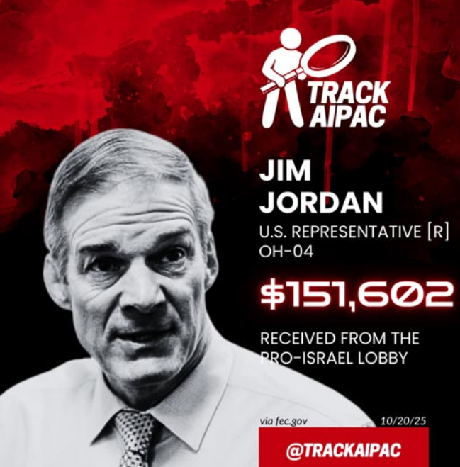 Potrivit datelor adunate de Track AIPAC, conducătorul comisiei, Jim Jordan a încasat peste 150.000 de dolari ca sponsorizări de la organizații de lobby pro-Israel. Și n-a rămas dator. Aceeași comisie pe care o conduce a produs rapoarte similare dedicate „pericolului terorii antisemite în Statele Unite”, în care acuza chinezii că lasă discursul radical pe TikTok. În mai multe intervenții se prezintă ca un adept al restricțiilor de exprimare în această direcție. De exemplu, într-un interviu la Fox News, se mira „de ce sunt permise protestele din campusuri”, ale studenților indignați de genocidul din Gaza.