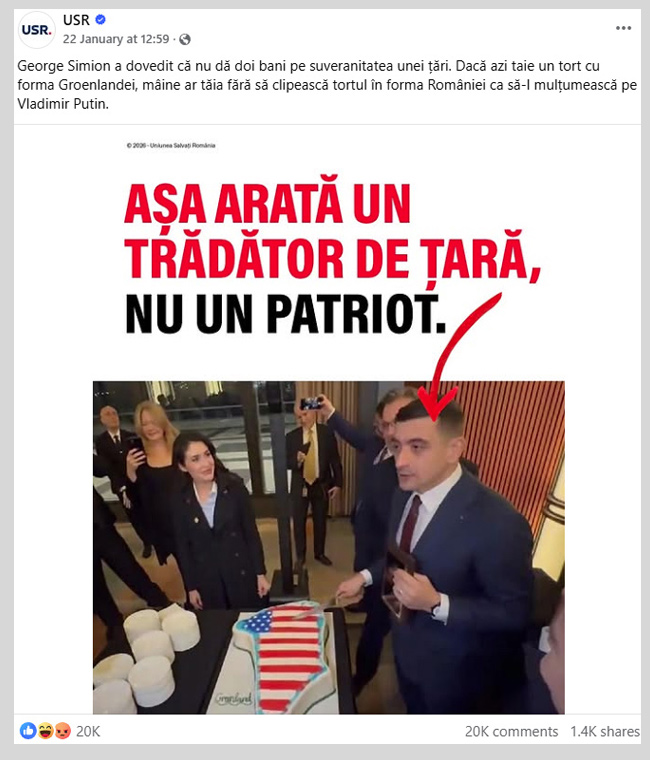 Rămas acasă, naistul Nicolae Voiculeț, membru AUR, a postat pe Facebook un mesaj furibund la adresa lui George Simion. Îi reproșează în termeni duri întâlnirea cu Daniel Fried, diplomat de pe vremea lui Bush și Obama, actualmente în ONG-ul globalist Atlantic Council. Fried s-a opus recunoașterii genocidului din Armenia și a fost ambasador în Polonia.