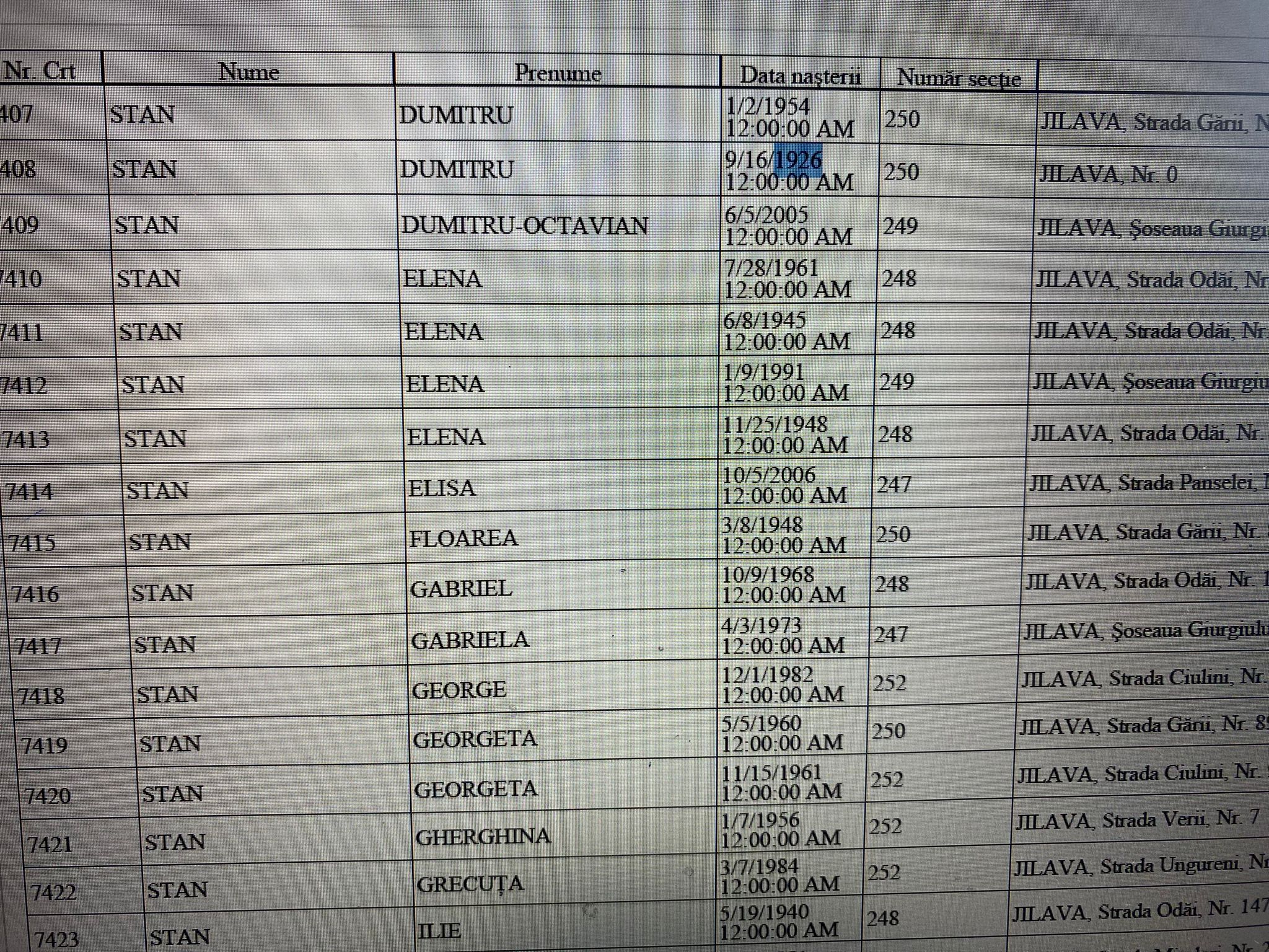 Cifra calculată săptămâna trecută de către consultantul politic Cozmin Gușă și reclamată public de diverși politicieni este de 1,7 milioane de decedați pe listele electorale permanente de la AEP. Mai jos vă prezentăm tabelele din Comuna Vidra și Dărăști, din județul Ilfov, în care se indică 426 de morți în Vidra și 92 în Dărăști, în total peste 500, doar în două comune. Vă vom ține la curent în continuare cu contabilizarea morților de pe liste care au votat.