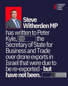Steve Witherden, membru al Parlamentului britanic, i-a scris lui Peter Kyle, Secretarul de Stat pentru Afaceri și Comerț, în legătură cu exporturile de drone, aflate în Israel, care ar fi trebuit să fie re-exportate – dar nu au fost.