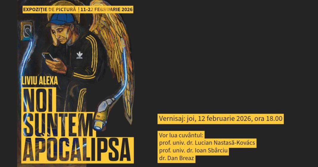 Muzeul de Artă Cluj-Napoca, instituție publică de interes județean care funcționează sub autoritatea Consiliului Județean Cluj, organizează, în perioada 11-22 februarie 2026, expoziția de pictură intitulată Noi suntem Apocalipsa, semnată de Liviu Alexa. Expoziția intră în circuitul de vizitare al muzeului începând de miercuri, 11 februarie, ora 10.00, astfel încât publicul are șansa de a se familiariza cu lucrările expuse încă din preziua vernisajului. Deschiderea oficială va avea loc joi, 12 februarie 2026, de la ora 18.00, în prezența prof. univ. dr. Lucian Nastasă-Kovács, managerul Muzeului de Artă Cluj-Napoca, a prof. univ. dr. Ioan Sbârciu, și a muzeografului dr. Dan Breaz, în calitate de curator al expoziției.