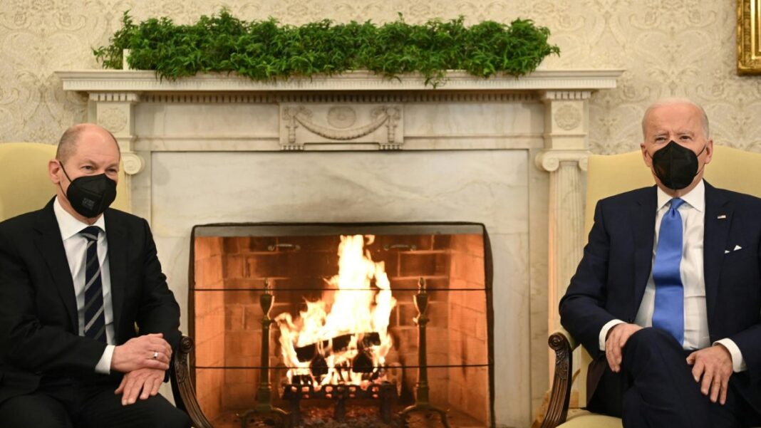Joe Biden și Olaf Scholz s-au pozat în fața șemineului. Purtând măști pe figură, au vrut să prezinte o scenă de liniște, în plin cald nemțesc. Figurația n-a prins. Canalele de social media din Germania s-au încins. „Olaf, de ce n-ai spus nimic despre North Stream 2?” – este întrebarea de top, pe twitter-ul german.