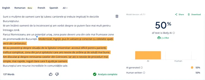 DISCLAIMER: Conform platformelor de verificare a conținutului redactat cu ajutorul Inteligenței Artificiale, rezultatele pot fi atât fals-pozitive cât și fals-negative.