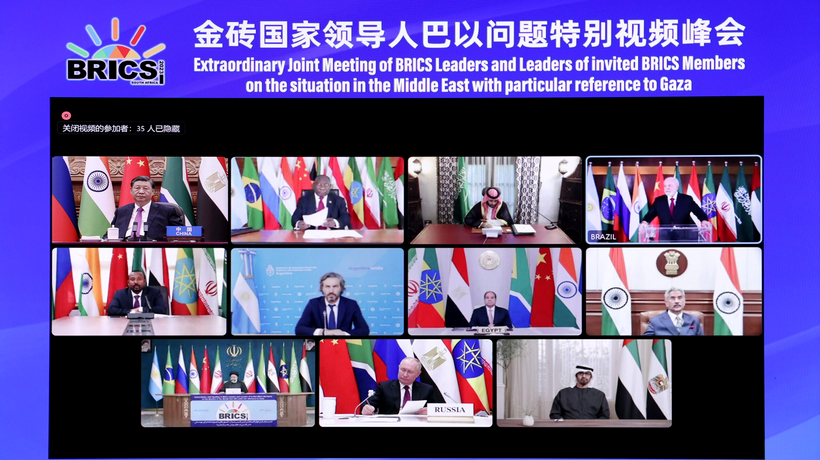 Grupul națiunilor emergente – Brazilia, Rusia, India, China și Africa de Sud – a organizat marți un summit prin videoconferință pe tema conflictului din Orientul Mijlociu. La reuniune au participat și liderii Argentinei, Egiptului, Etiopiei, Iranului, Arabiei Saudite și Emiratelor Arabe Unite, precum și secretarul general al ONU, Antonio Guterres.