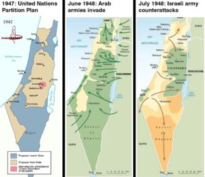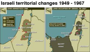 În acest context, privind la ce se petrece în aceste ore și aceste zile în regiune, să reamintim încă două hărți celebre. Prima a fost prezentată de Primul Ministru al Israelului în septembrie 2023 într-un discurs de la tribuna ONU. Aveți aici o relatare completă din sursă israeliană https://www.timesofisrael.com/pm-predicts-an-israel-transformed-in-mideast-has-no-words-for-internal-israeli-peace/ a momentului istoric pe nedrept considerat doar o simplă declarație de intenții și nimic mai mult. Numai că, atunci, dădea un semnal extraordinar: pe hartă, iată, nu există menționată existența vreunei entități statale palestiniene…
