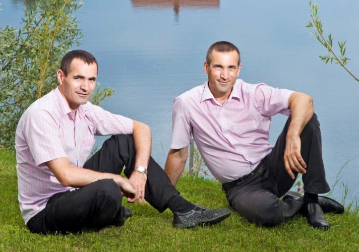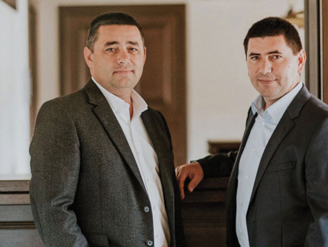 Elis Pavaje, a fraților albanezi Vasile și Emil Goța (foto cu ei cum le iese capul prin păr), făcea pavele până în 2021 și nu depășea un milion de euro profit, dar, după Covid, s-au predat politic ca doi fomişti intrați pe tărâmul bănuțului public din contracte de canalizare, întreținere drumuri, furnizare material antiderapant, adică acolo unde se poate umfla totul și unde nu verifică nimeni nimic, pentru ca parandărătul să fie mulțumitor.