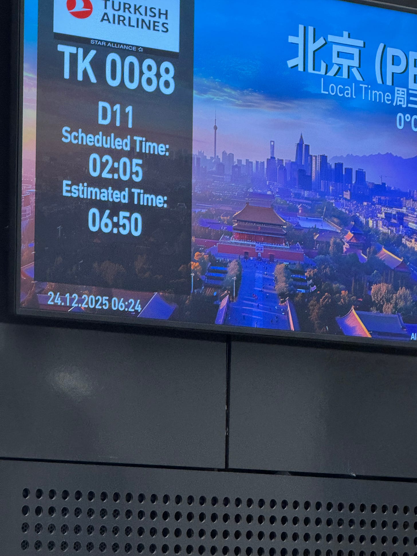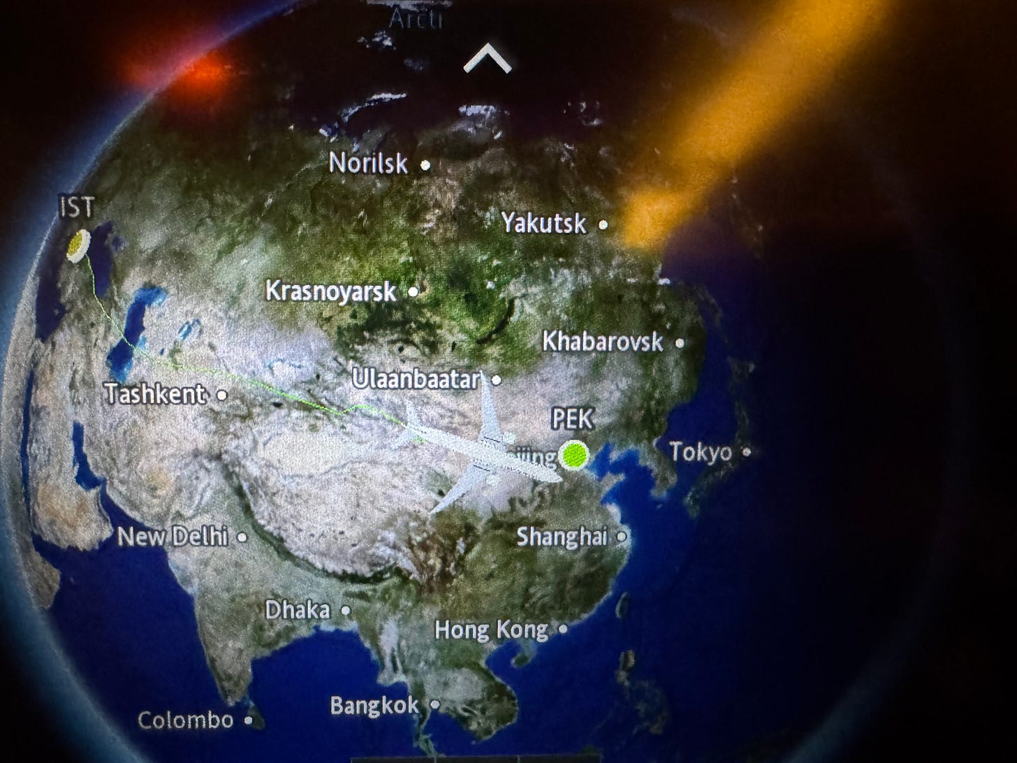 Am călătorit cu Turkish Airlines, companie care încă oferă destinații senzaționale la prețuri incredibile. Nu știu dacă chinezii subvenționează Turkish, dar biletul dus-întors a fost foarte, foarte ieftin. Din păcate — și a fost doar ghinion, dar un ghinion de ținut minte — Turkish a ales să pună pe drumul nostru Istanbul–Beijing o aeronavă îmbătrânită, mai ceva ca un autobuz zburător.