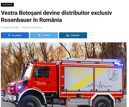 De exemplu pentru masini de pompieri, autospeciale speciale, haha, pentru care ce sa vezi are exclusivitate Vestra, firma plozilor lasati pe post de sageti de baronul Iftime.