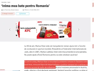 Vizer also claims in interviews that his “heart” beats for Romania. It’s just that he is no longer a Romanian citizen, but an Austrian one, precisely to save his skin from criminal cases in the country, because Austria did not have an extradition agreement with Romania at that time.