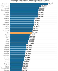 - Toți cei care spun că salariile în România nu sunt corelate cu productivitatea muncii greșesc sau mint cu bună știință, căci, iată, la nivelul salariului mediu (18 800 euro PPS anual în 2023) suntem mult sub Polonia (23 000 euro PPS), Grecia (20 000 euro PPS) sau Portugalia (19 200 euro PPS), deși avem o productivitate superioară respectivelor economii. Avem, deci, suficient spațiu de creștere pentru salarii: