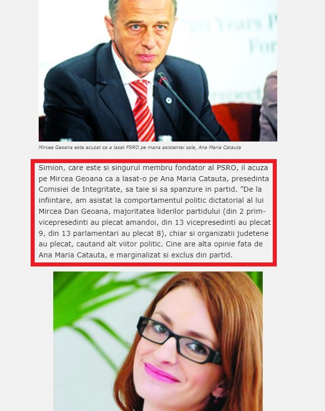 Catauta are legături extrem de apropiate cu Mircea Dan Geoană, fostul președinte al PSD și secretarul adjunct al NATO, fiind chiar vicepreședintele unui ONG fondat de Mircea Geoană, membru în Institutul Aspen și colaborator al entității “Emerging Europe”, unde critica guvernarea PSD ALDE și “asaltul asupra justiției” din 2017. Cu alte cuvinte, doamna Catauta, mâna dreaptă a domnului Mircea Geoană, era cu #REZIST în suflet.