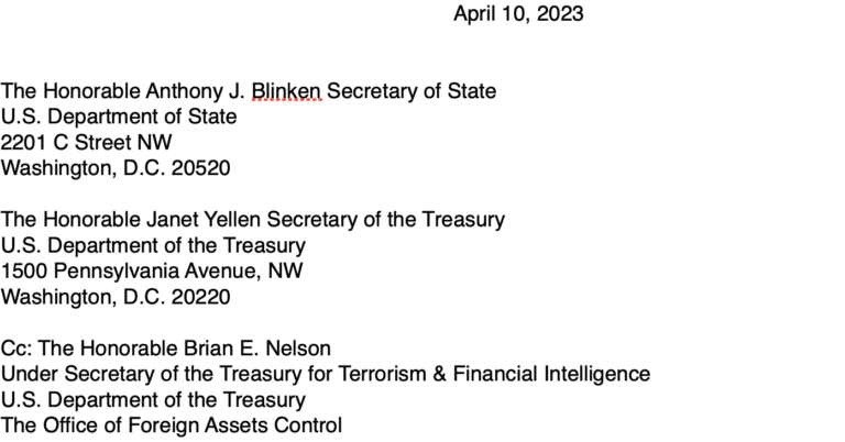 Stimați secretari, Blinken și Yellen: