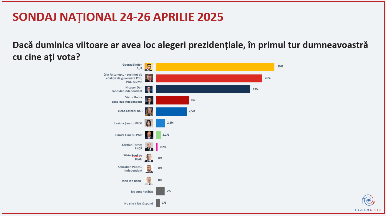 Validarea eșantionului: s-a realizat după datele A.E.P privind prezența la vot, la alegerile prezidențiale tur 1 din 24 noiembrie 2024. Datele sunt ponderate în funcție de genul și vârsta respondentului.
