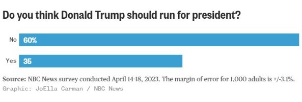Sondajul NBC News – realizat pe 14-18 aprilie – vine după arestarea și trimiterea în judecată a lui Trump în New York, sub acuzația că a falsificat documentele de afaceri pentru a ascunde informații dăunătoare într-un caz de bani ascunși.