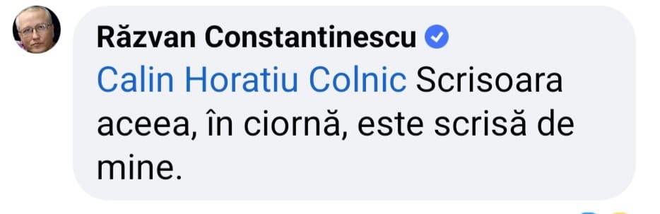 Într-un comentariu pe Facebook, “muschetarul” Răzvan Constantinescu însuși, a recunoscut că el este cel care a scris-o.