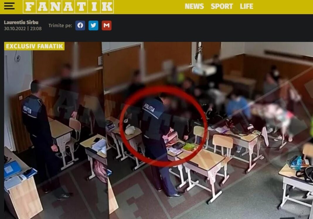 Polițiștii au acționat în forță, de zici că se aflau în mijlocul unei bande de infractori și nu în mijlocul unui grup de elevi într-o școală. „Zici că erau pitiți sub bănci al de Sile Cămătaru, Fane Spoitoru sau Cordunenii…”, comentează ironic jurnalista.