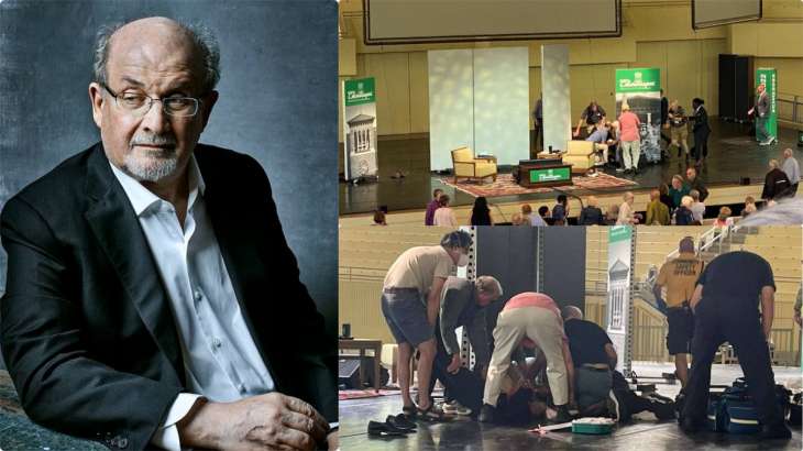 Rushdie, în vârstă de 75 de ani, tocmai își luase locul pe scenă. În timp ce organizatorul evenimentului de la Chautauqua prezenta autorul, un bărbat a alergat pe scenă din lateral și i-a atacat pe Rushdie și pe vorbitor, cel din urmă suferind o rănire facială superficială. Un polițist din statul New York l-a arestat pe presupusul atacator, iar un medic din audiență i-a oferit asistență lui Rushdie, înainte de sosirea paramedicilor.