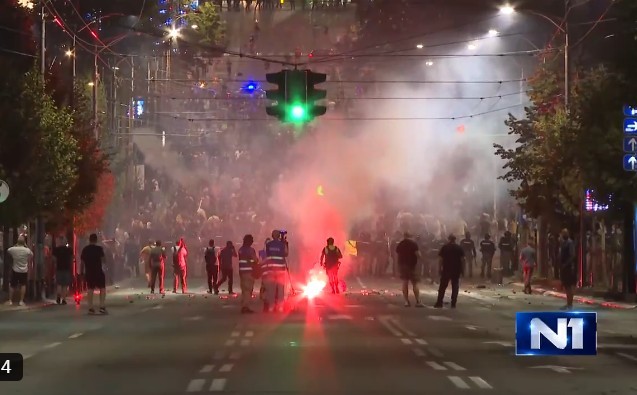 Noi confruntări au izbucnit între protestatarii antiguvernamentali şi poliţie în Serbia, în cea de-a cincea noapte consecutivă de incidente, după ce birourile Partidului Progresist Sârb (SNS), aflat la putere, au fost incendiate, relatează BBC.